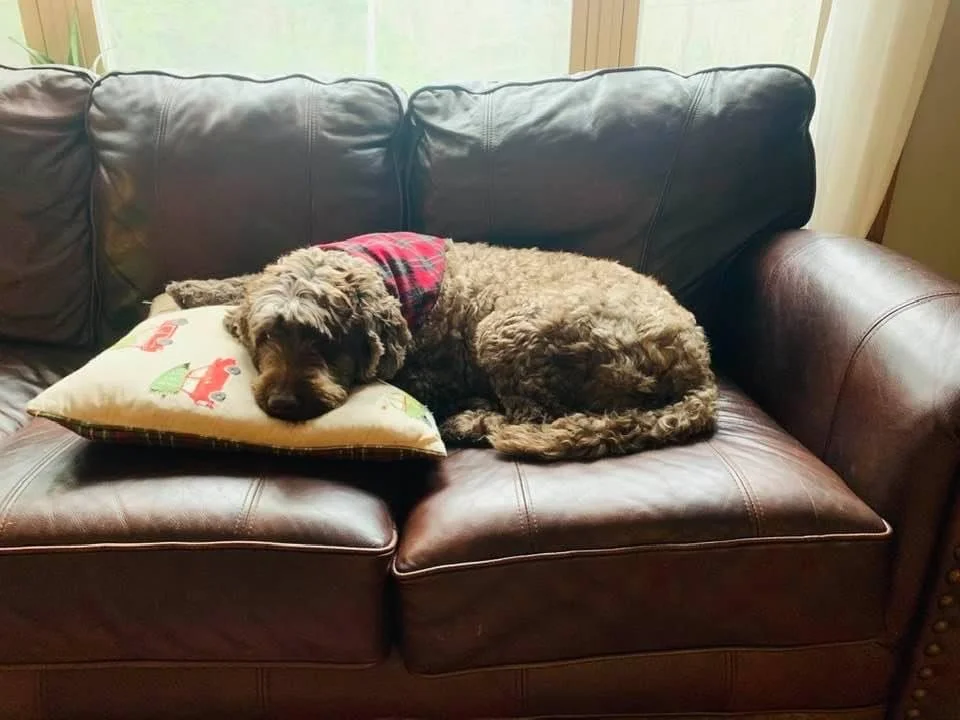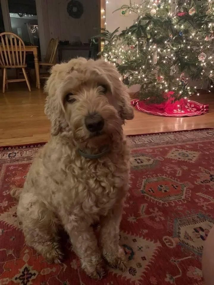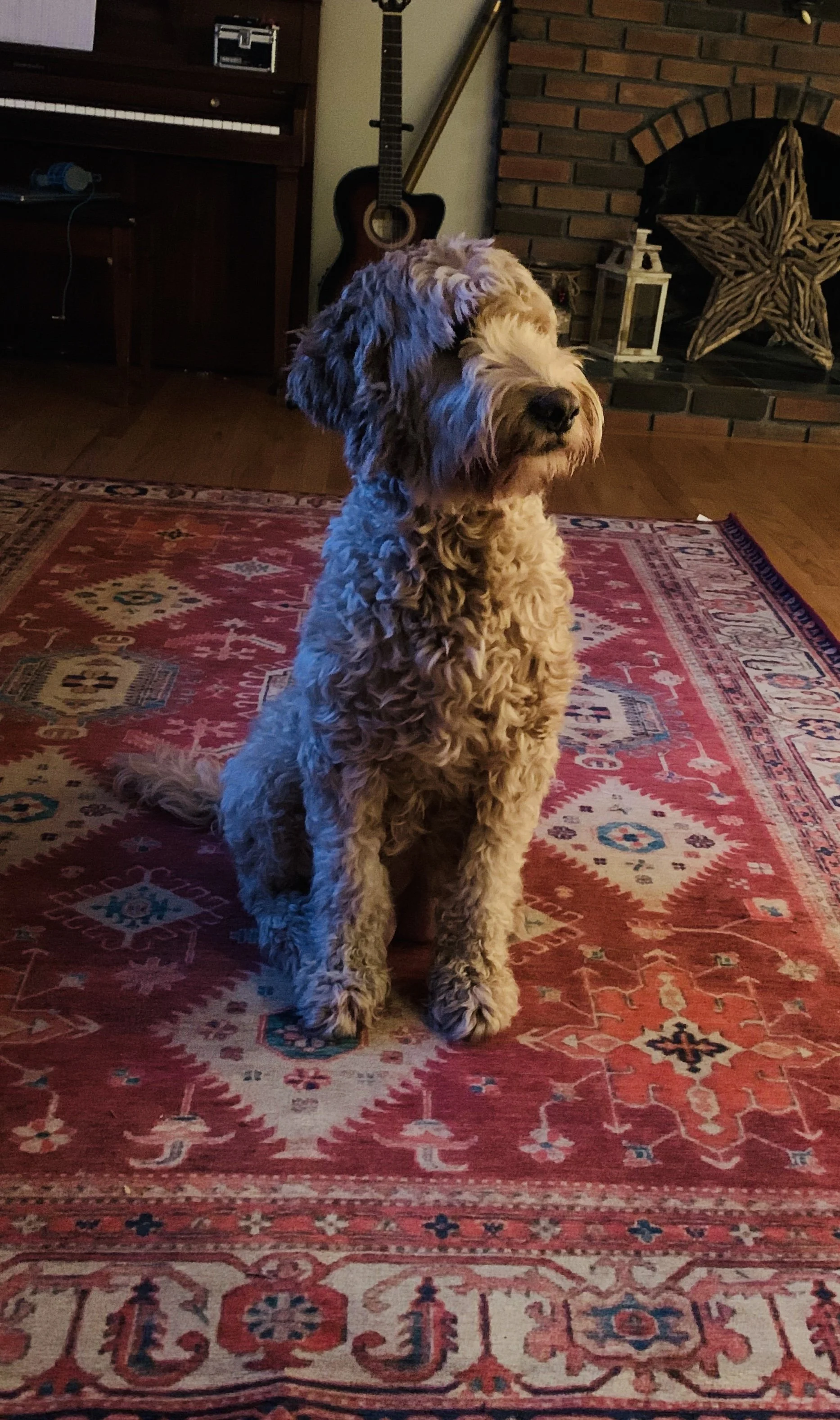 Snug Harbor Persephone (Percy), retired. Percy is a standard Cobberdog who is brilliant, affectionate, and an enthusiast of endless games of fetch. She believes herself to be the ideal watchdog for our home and leader of the pack as the quintessential matriarch of our canine family.